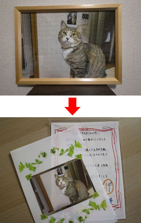 組み立てたパズルをフレームにセットしたものをプレゼント用としてラッピングして欲しい場合は、