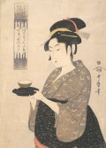 - 1793年頃出版のこの作品は、当時評判の美人であった水茶屋「難波屋」おきたをモデルとして描いています。