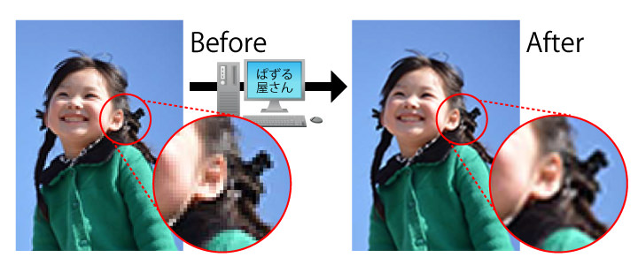 もし解像度の高いデータをお持ちで無い場合は、可能な限りの修正を行います。ペットが初めて家に来た日の写真、恋人との初デートの写真、結婚式の写真など、古い写真やカメラ性能の低い携帯の画像でも、ご心配な場合はご相談承りますのでご安心下さい。